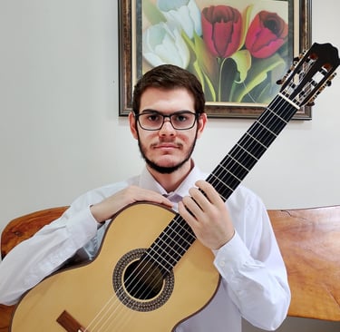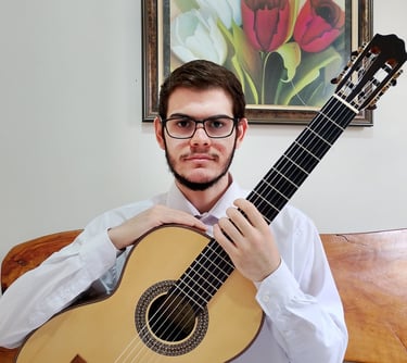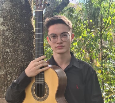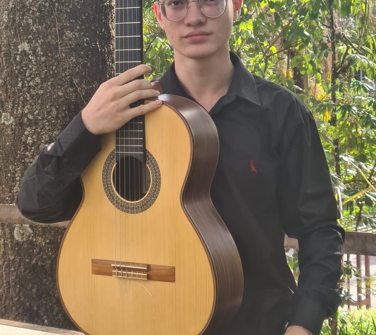 ano de 2012, em um trabalho social de ensino musical na igreja Congregação Cristã no Brasil. No ano de 2015, ingressou no Conservatório Municipal de Patos de Minas, onde formou-se em Teoria Musical e Violão Clássico, sob orientação do professor Wanderson Paulo. Atua como Violonista e Violinista em eventos na região de Patos de Minas – MG. Participou de diversos festivais como: XXXI e XXXII Concurso Internacional de Violão Souza Lima, nos respectivos anos de 2020-2021, onde obteve premiações em ambas participações; 3° Concurso “Violão em Cena” do Conservatório Municipal de Patos de Minas; Festival Cine Território, em 2024.